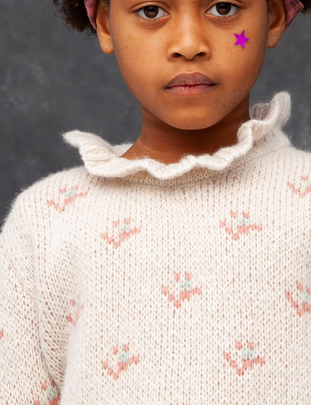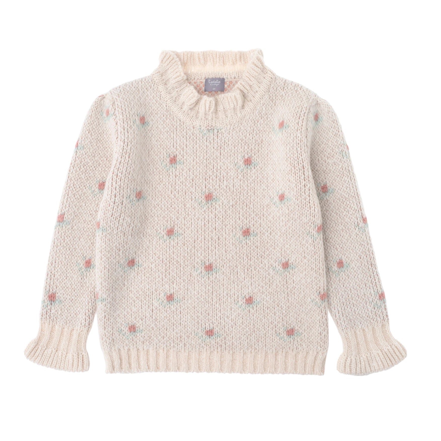 Knited Girl Cardigan with Flounce Neck Openwork | TOCOTO VINTAGE