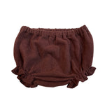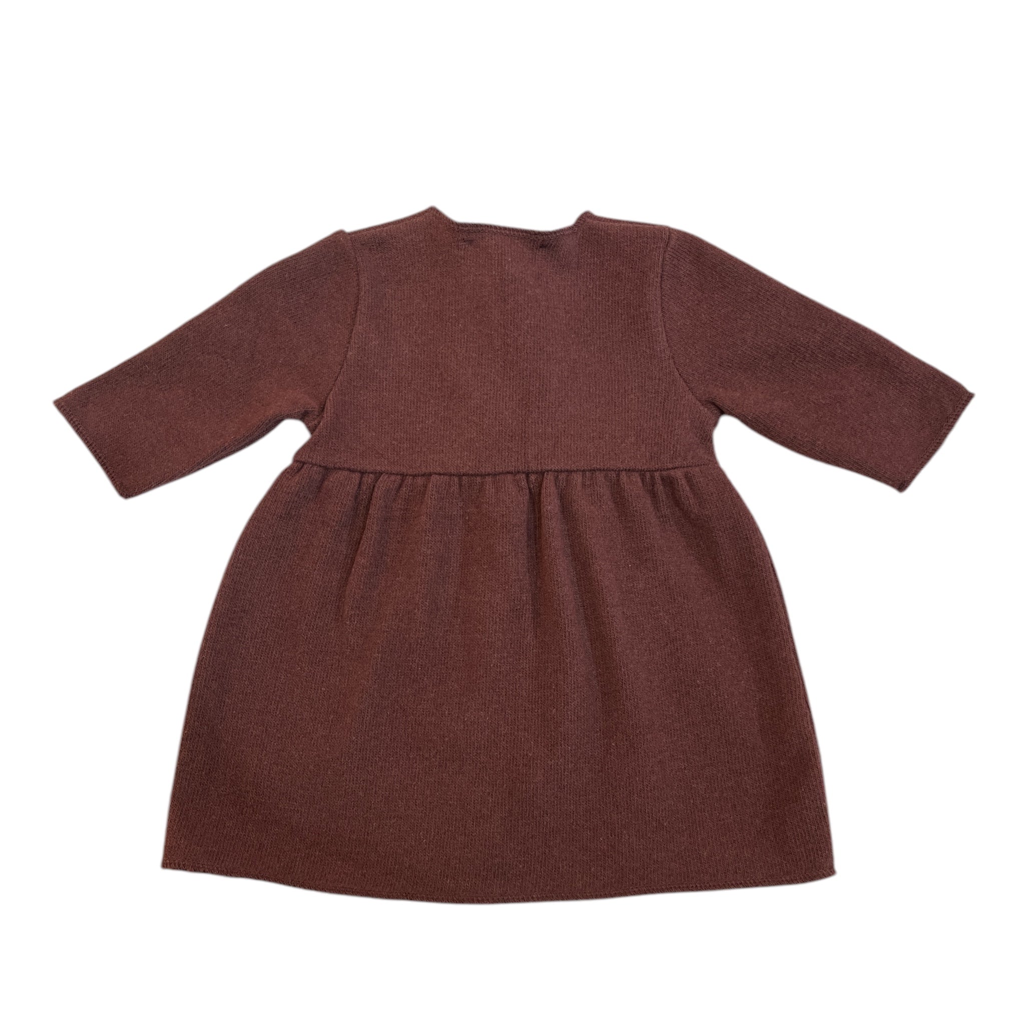 Dress your little one in cozy elegance with this adorable burgundy knit dress, complete with matching diaper bottoms for a coordinated and polished look. Made from 100% soft, breathable cotton, this outfit is designed to keep your baby comfortable and stylish all day long. The dress features four delicate white and tan buttons down the front, adding a touch of charm and classic detail to the design.