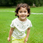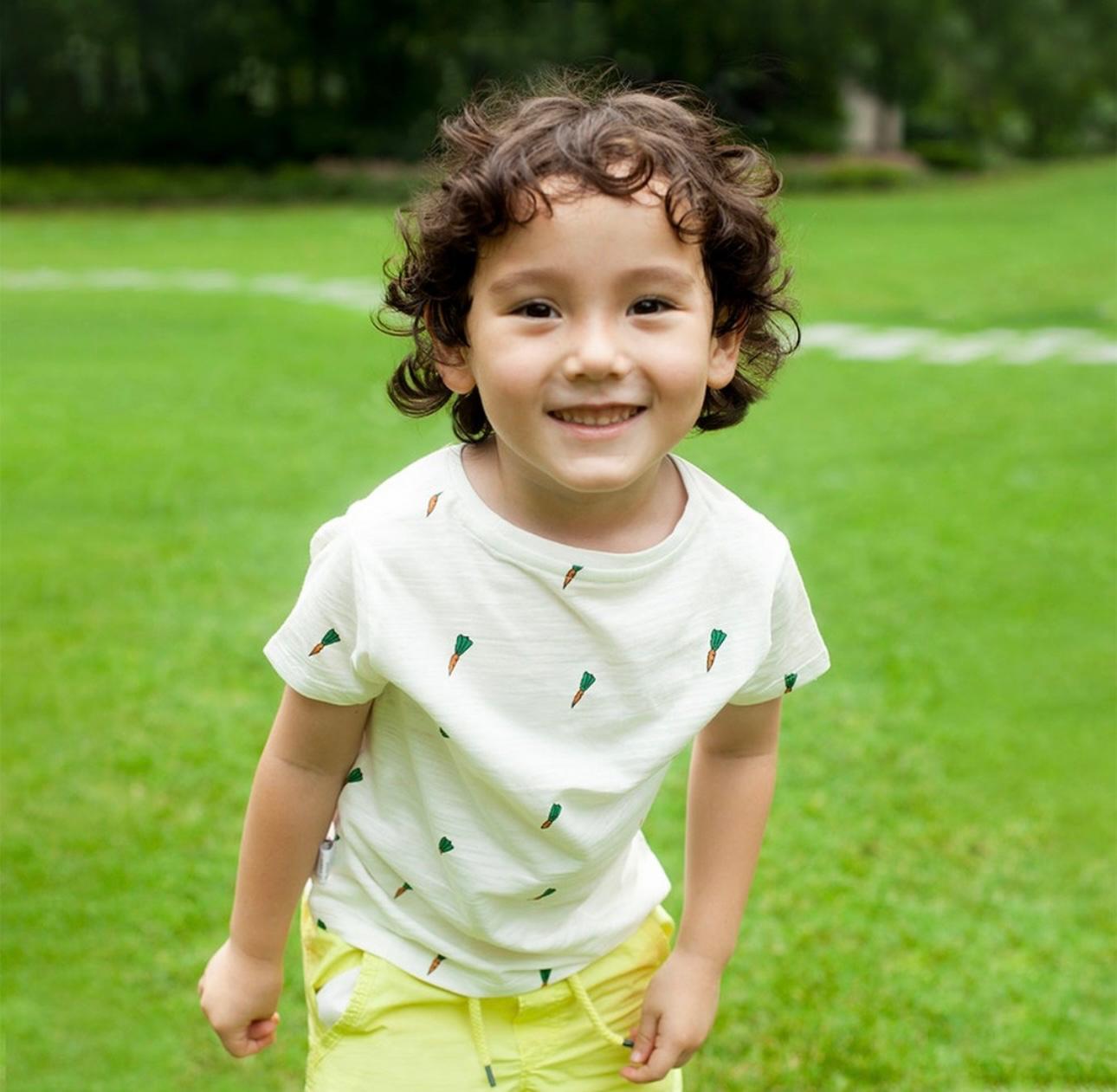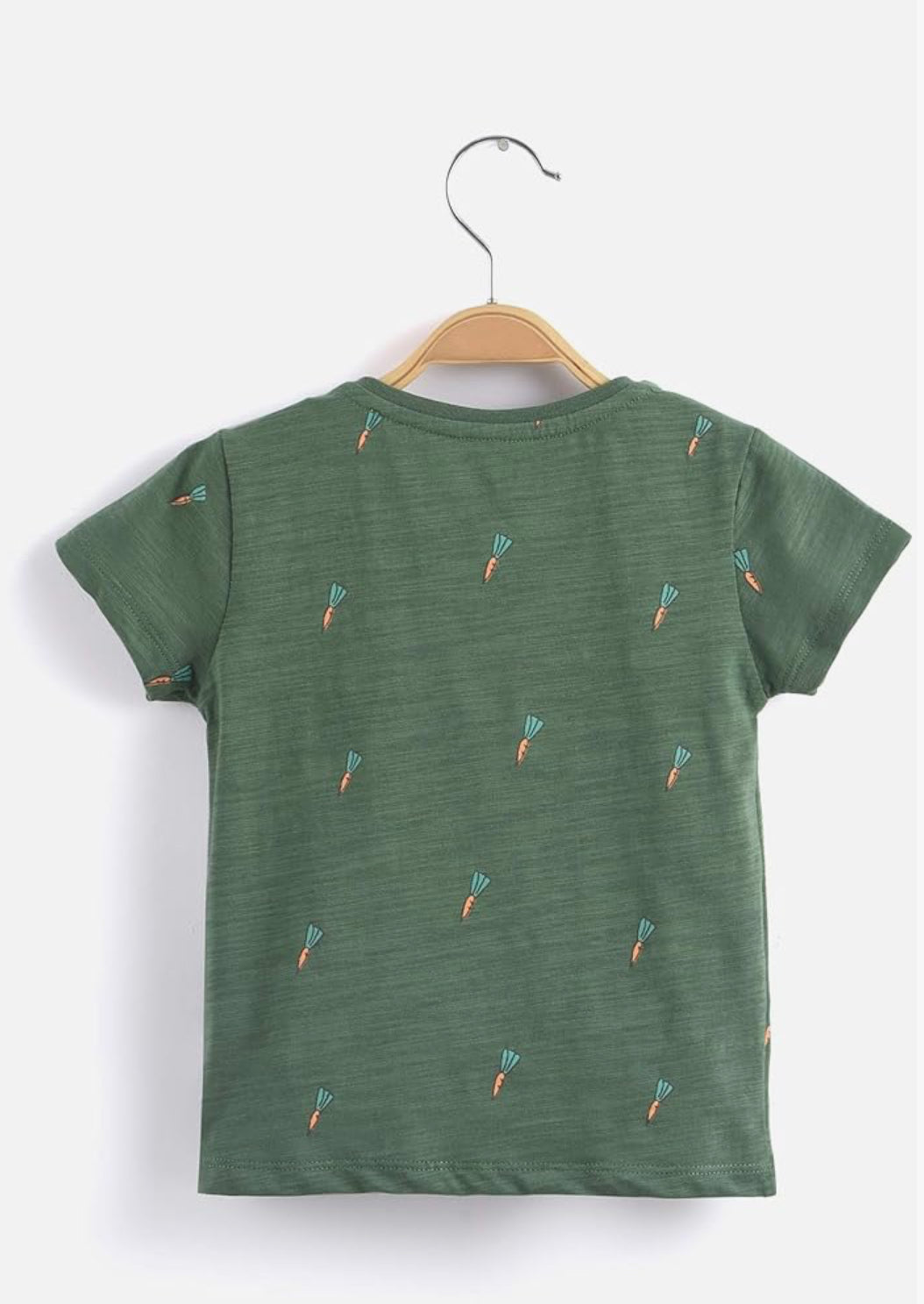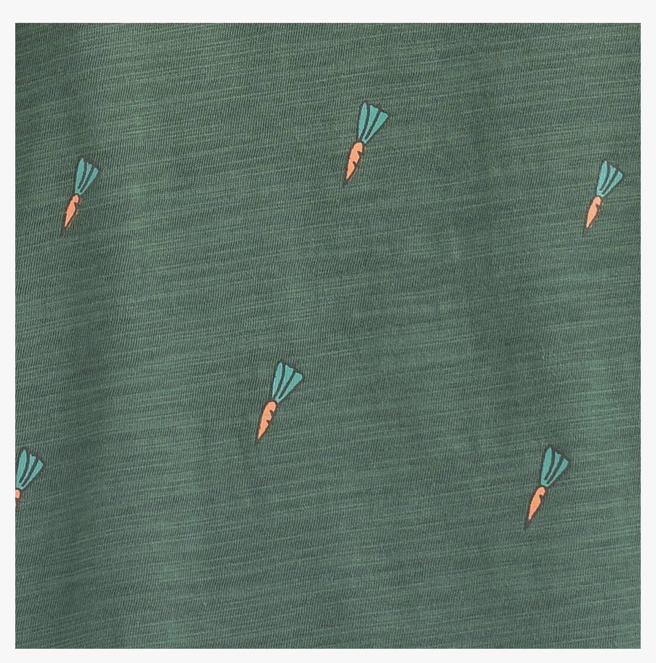 Crafted from 100% premium cotton, Aimama's Carrot Print T-shirt for baby boys and toddlers is designed with both comfort and style in mind. Available in soft, natural colors (either forest green or white), these T-shirts minimize the use of unnecessary dyes, making them gentle on your little one's skin and eco-friendly. The breathable, ultra-soft fabric ensures all-day comfort, while the crewneck design offers a relaxed fit that's perfect for everyday wear. 12months - 6years old.