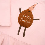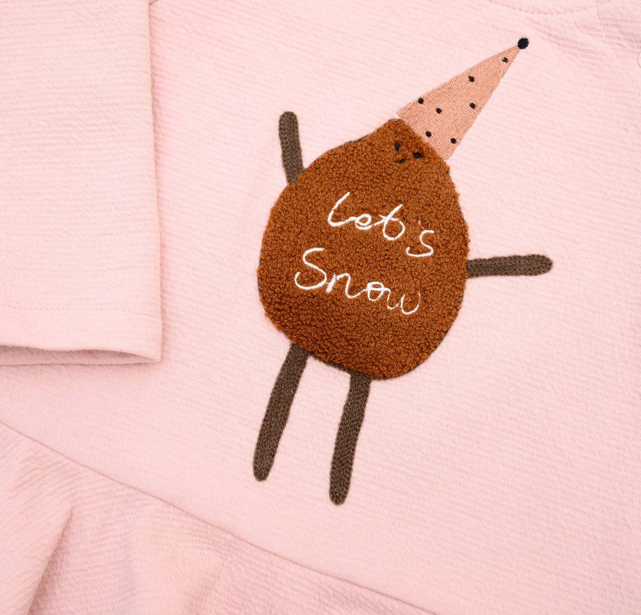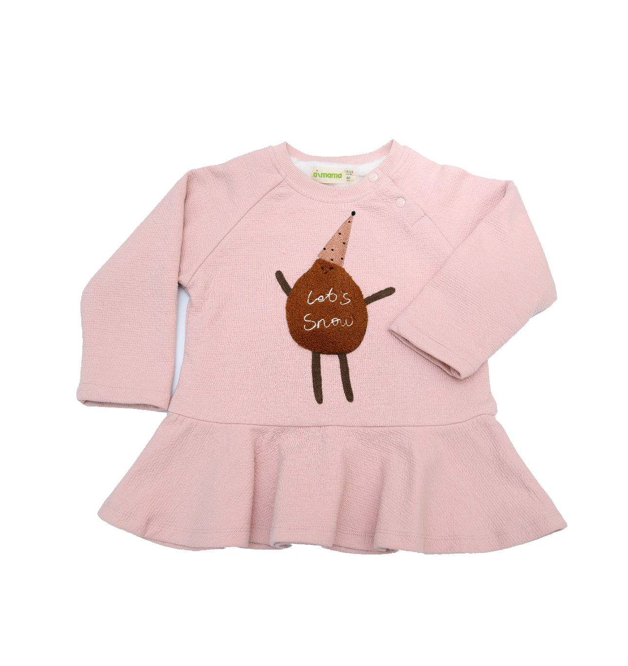 The Aimama Light Pink Frilled Fleece-Lined Dress is a cozy yet adorable choice for little ones aged 12 months to 6 years. Crafted with a soft fleece-lined interior, this long-sleeve dress keeps kids warm while maintaining a lightweight, comfortable feel. The short, frilled hem adds a playful touch, while the charming "Let’s Snow" embroidered design on the front brings a festive wintery charm. Designed with two buttons on the shoulder for easy dressing, this dress is perfect for chilly days, combining warmth, style, and everyday practicality.