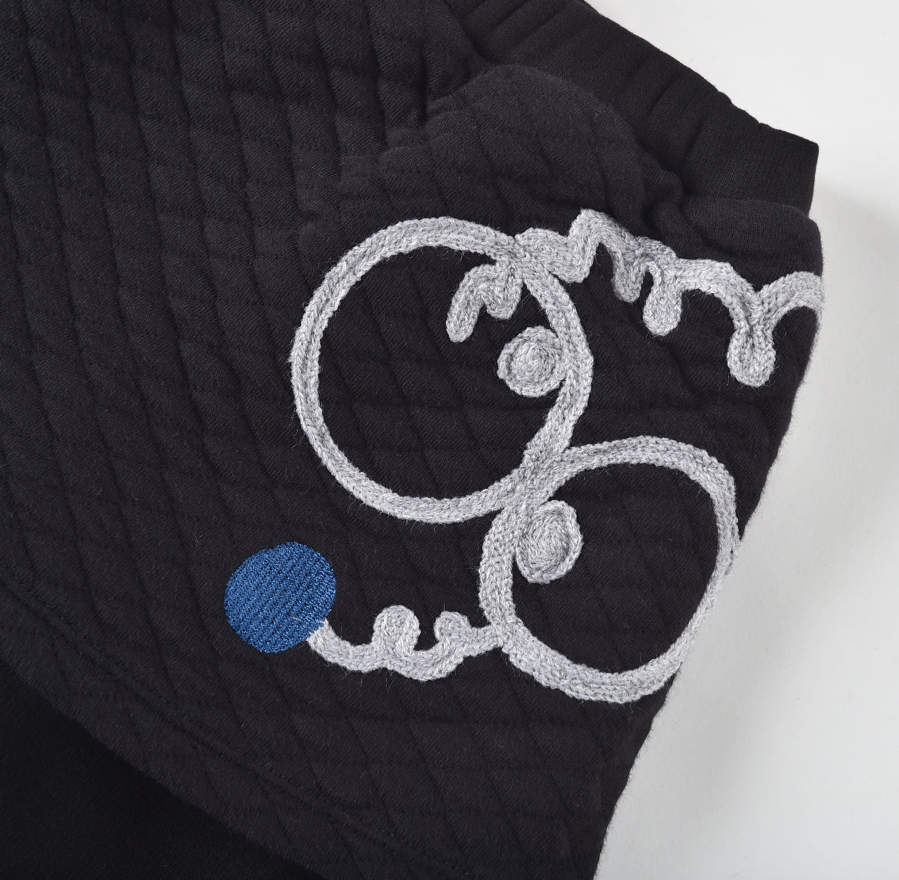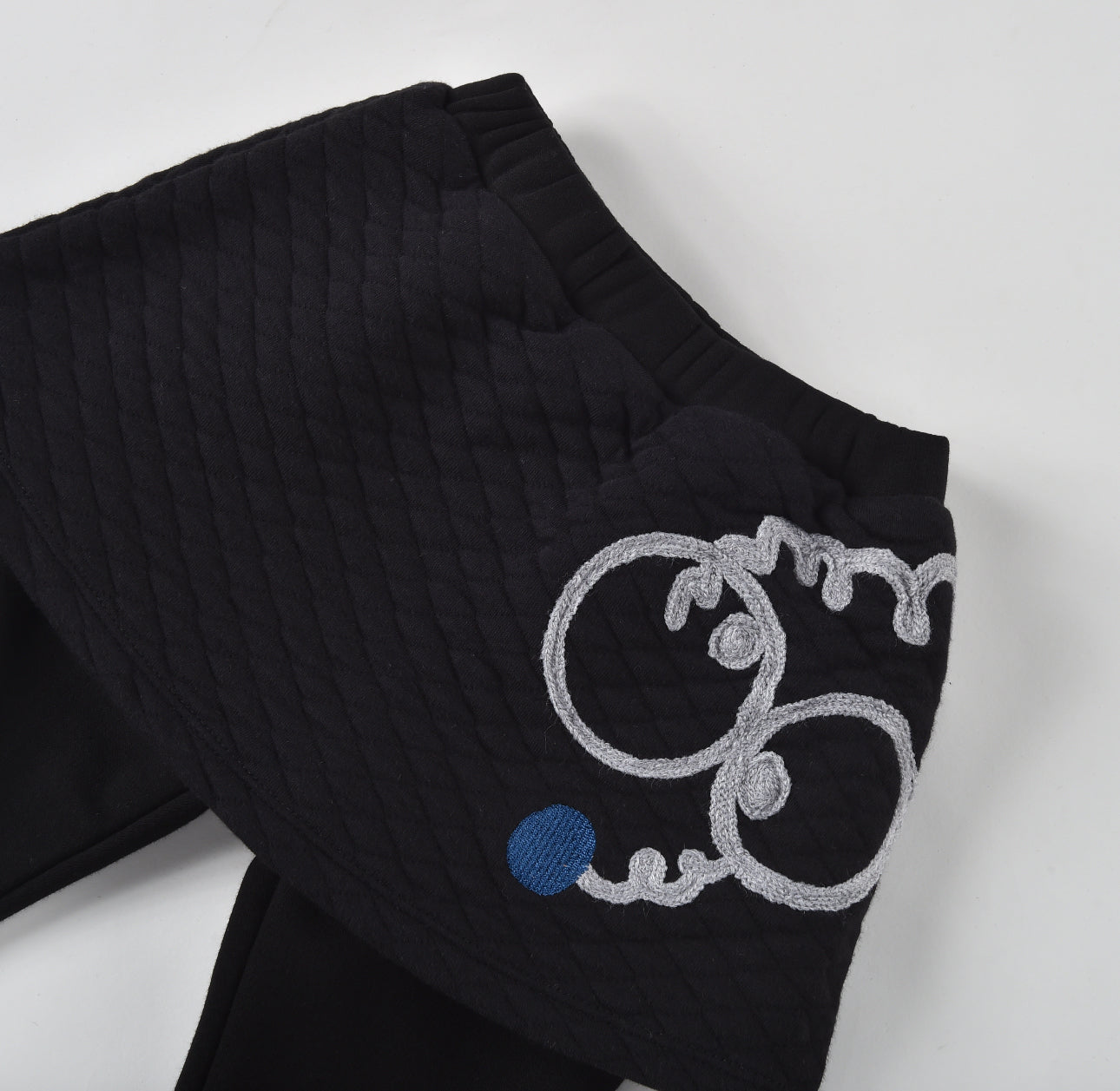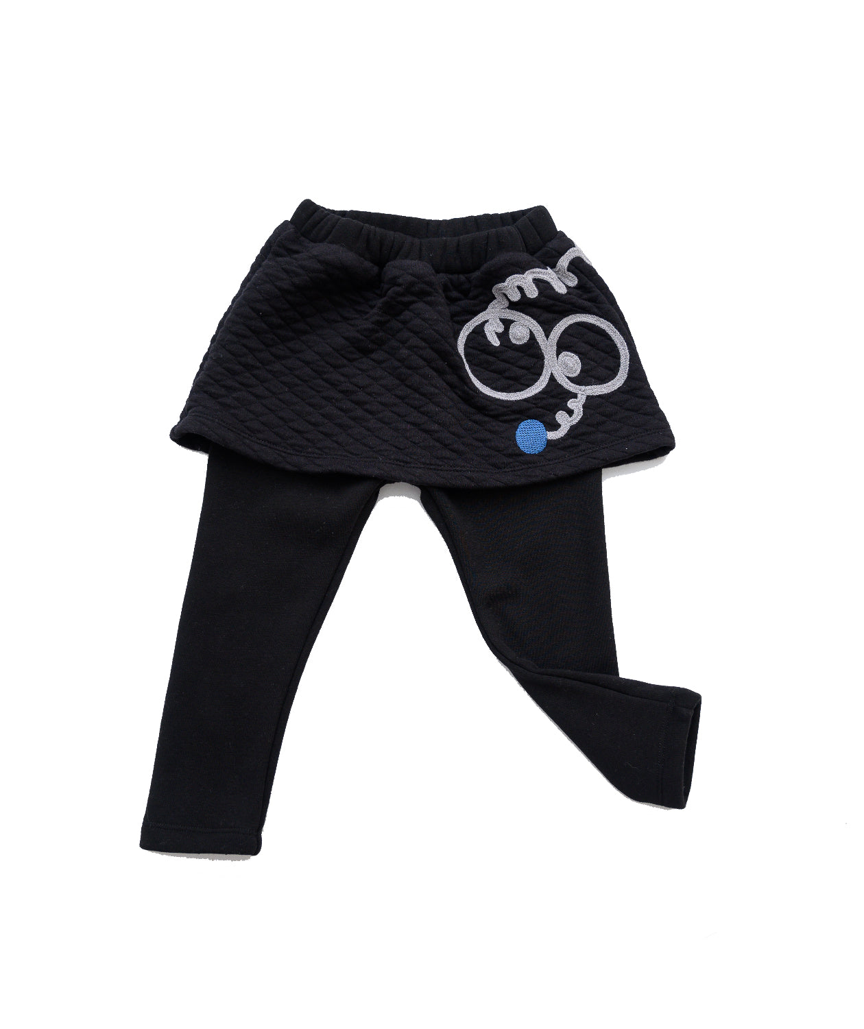 The Aimama Black Quilted Skirt Leggings are a stylish and cozy essential for little ones aged 12 months to 6 years. This unique piece combines the warmth and comfort of thick black leggings with the chic look of an attached quilted skirt. The abstract silver embroidered detail adds a subtle, modern touch, while the elastic waistband ensures a snug and flexible fit. Perfect for layering in cooler weather, these skirt leggings offer effortless style and comfort for everyday adventures or special outings.