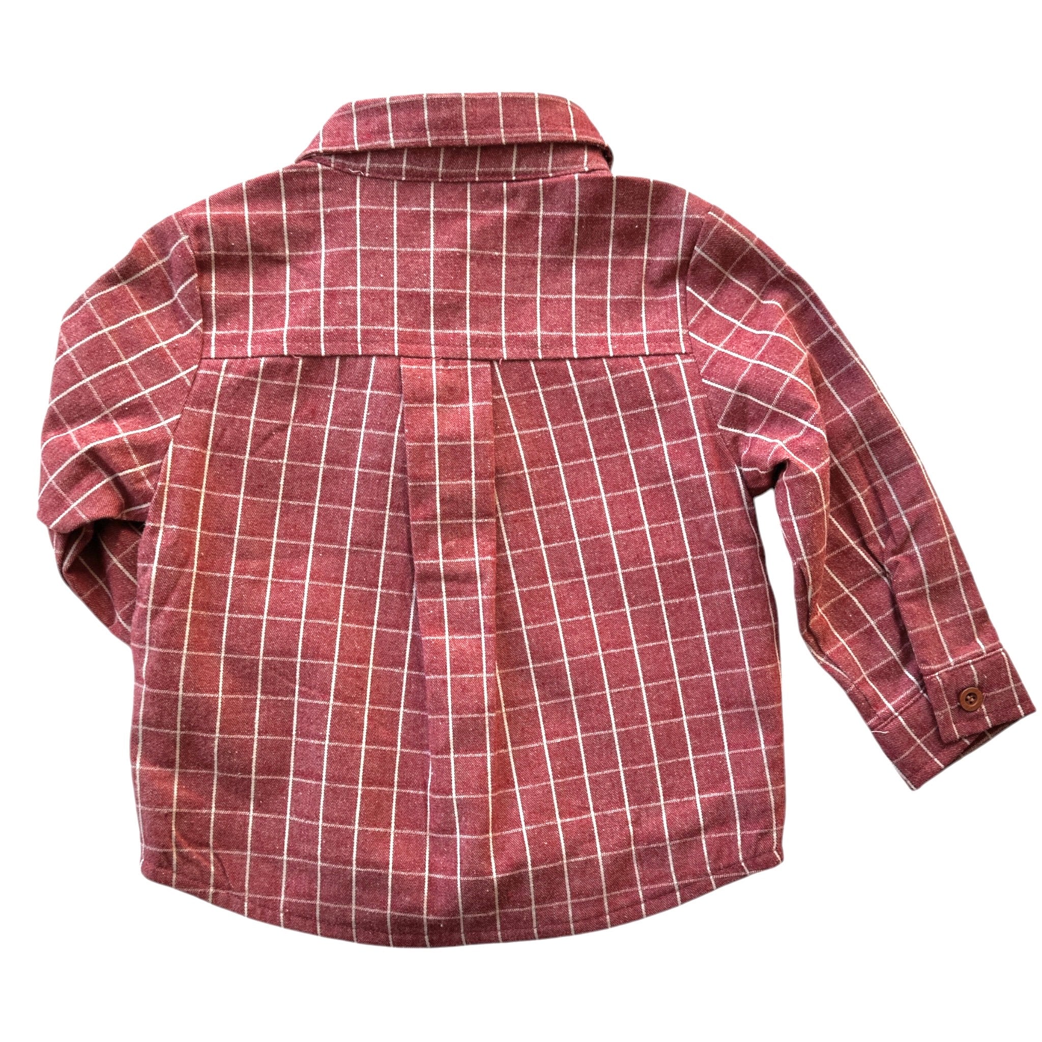 The Red Checkered Button-Down Shirt by Aimama is a stylish and versatile wardrobe essential for boys aged 12 months to 6 years. Made from 100% cotton, this shirt offers a soft, breathable fit that's perfect for all-day wear. The vibrant red checkered pattern, featuring crisp white lines, adds a bold yet classic touch to any outfit. With its button-down design, long sleeves, and collared neckline, this shirt exudes both comfort and style. The brown buttons provide a rich contrast, completing the look for a timeless, polished feel—ideal for casual outings or dressed-up occasions.