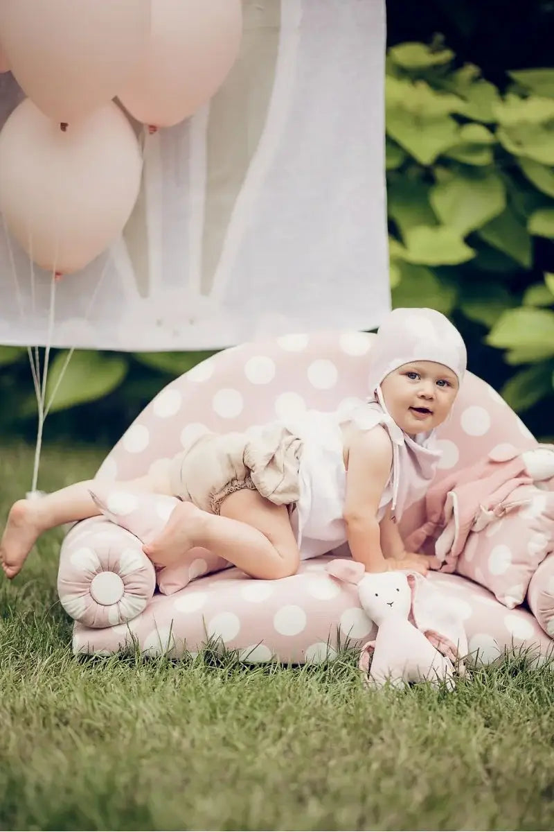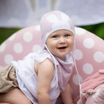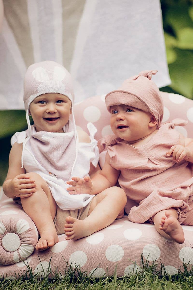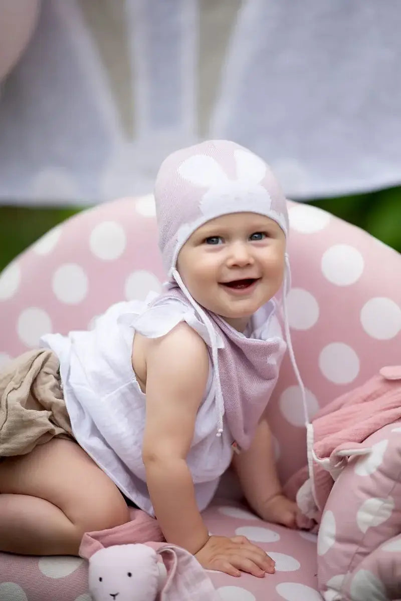 Introducing the Bunny Lilla Spring Hat and Scarf Set for Kids, a charming addition to your child's wardrobe designed to keep them stylish and warm during chilly spring days. Crafted from 100% ECOTEC cotton, this set features an adorable bunny ear print on the hat, and the design finishes with the scarf. Available in gray, pink, light purple, and light blue for 6-12 month olds. With secure ties, the hat is easy to adjust, ensuring it stays in place throughout playtime. This versatile set complements a variety of styles and occasions, making it an essential clothing accessory for your little one. Size: 46cm.
