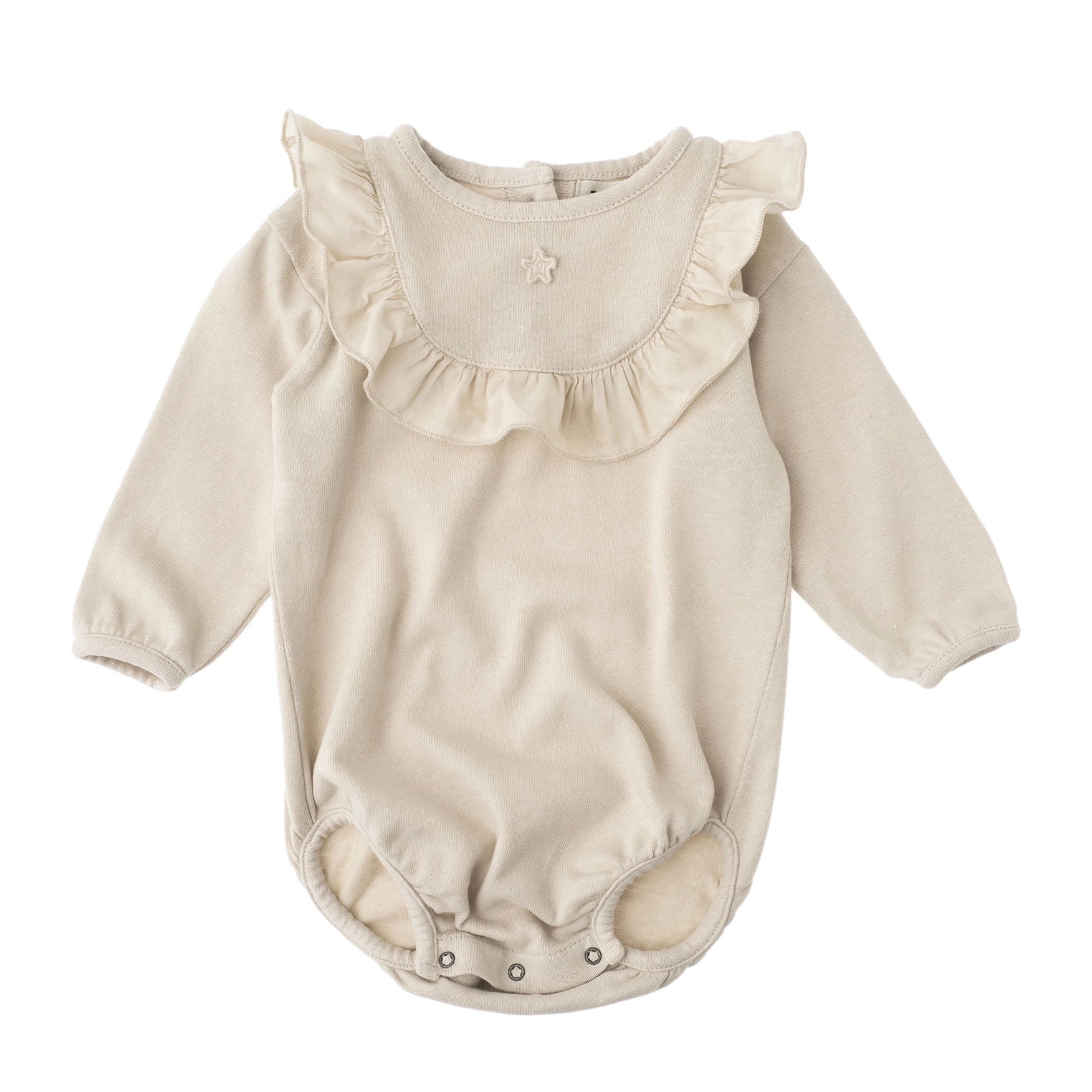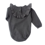 Sweet and stylish, the Baby Ruffled Yoke Bodysuit is the perfect combination of comfort and charm for your little one. Made from soft, breathable fabric, this bodysuit keeps your baby feeling cozy while the delicate ruffled yoke adds a touch of elegance and cuteness. The snap-button closures at the bottom make diaper changes a breeze, while the stretchy neckline ensures easy on-and-off without discomfort. Whether worn alone on warm days or layered with leggings or skirts in cooler weather, this bodysuit is a versatile wardrobe essential that keeps your baby looking adorable and feeling comfy all day long.