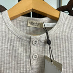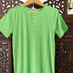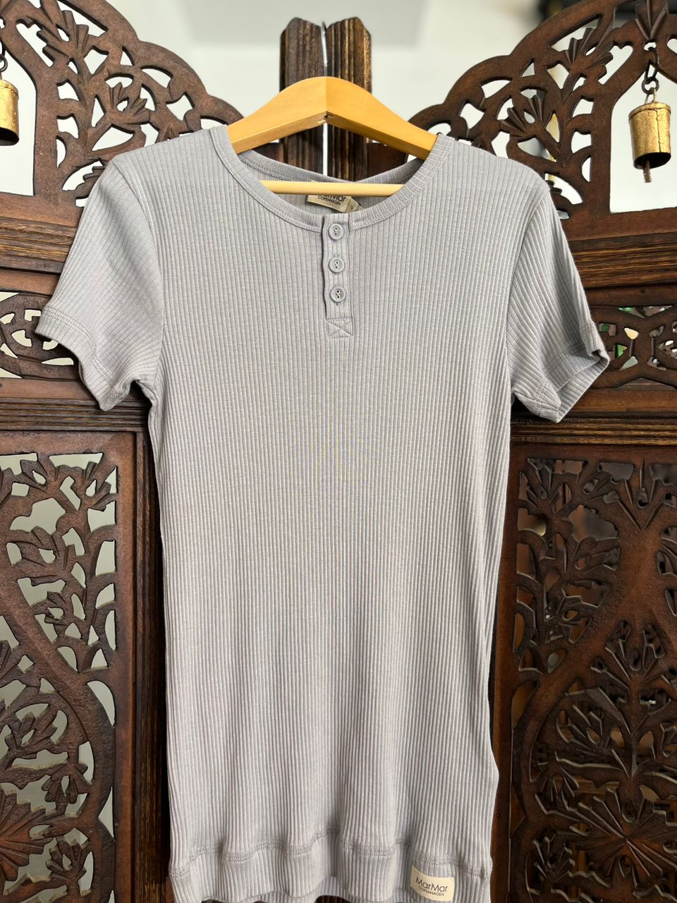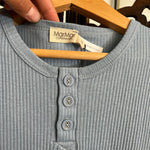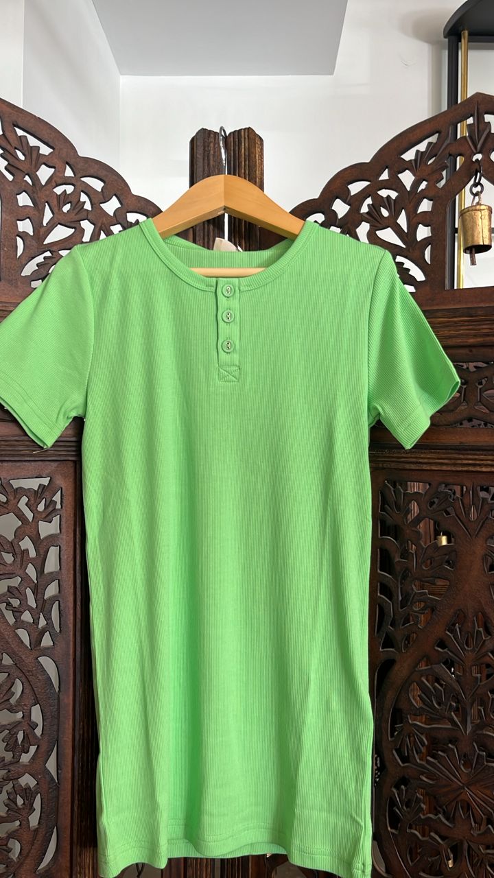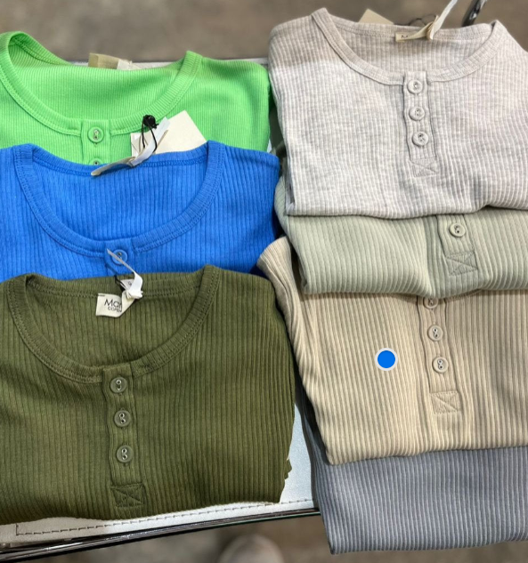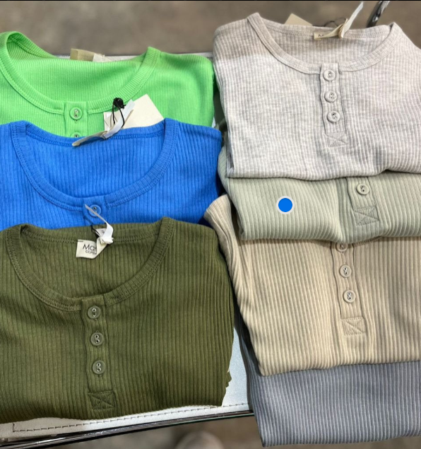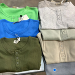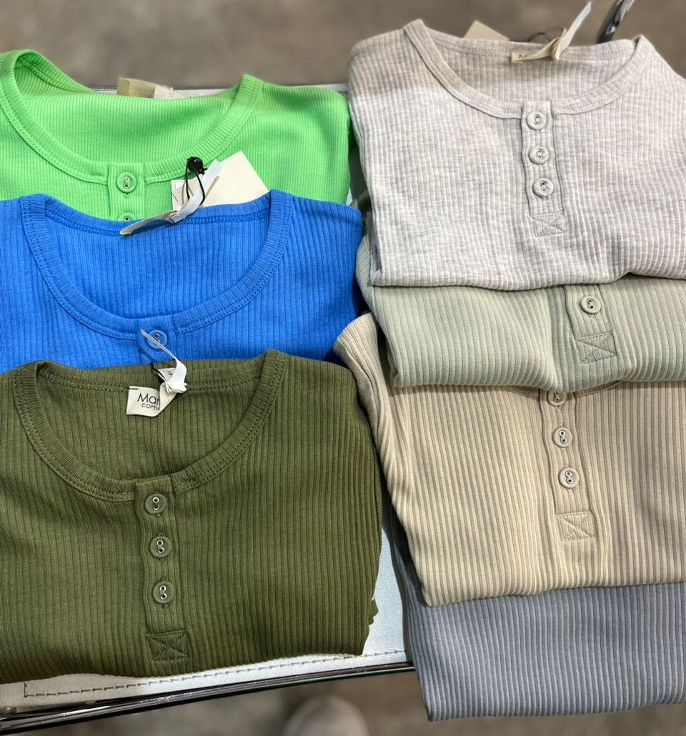 Featuring a classic ribbed texture and button detailing at the neckline, this versatile piece adds a touch of charm to any outfit. Available in nine stunning colors, it’s easy to mix and match with jeans, leggings, or skirts, making it a must-have for any wardrobe.