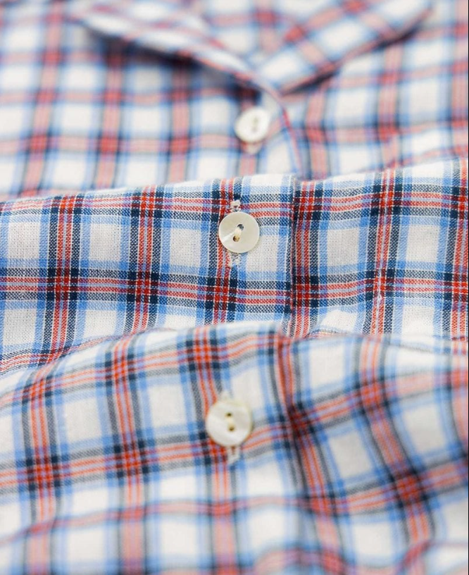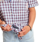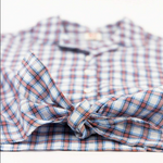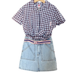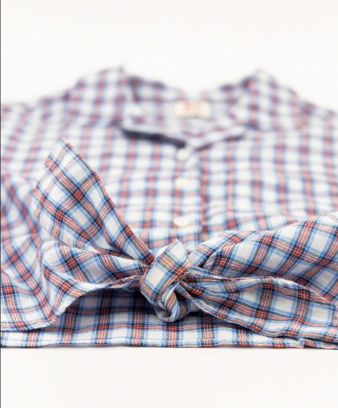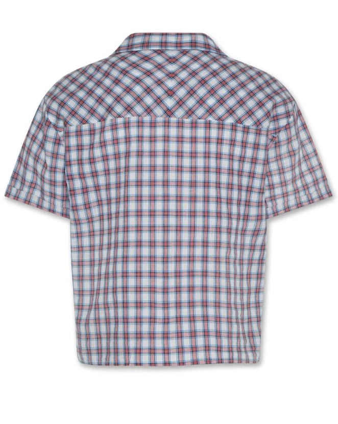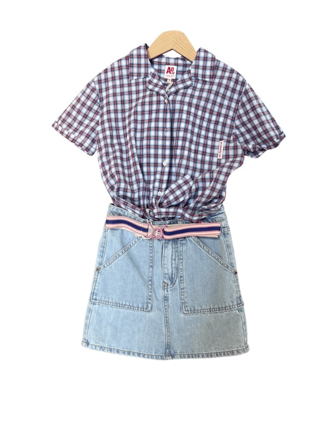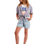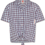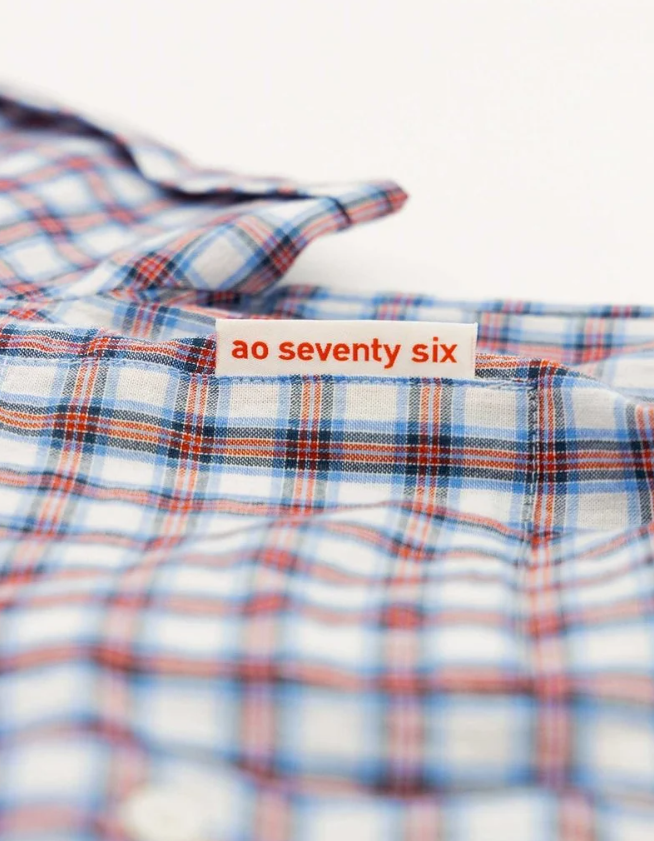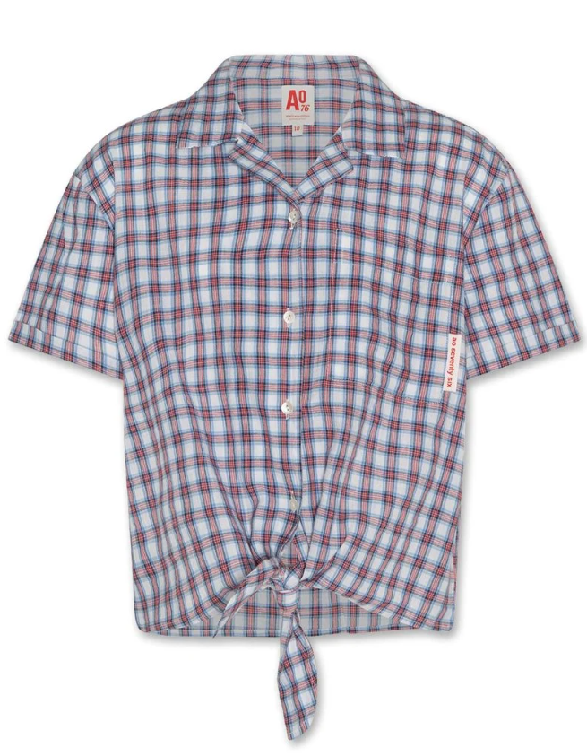 Blue and white checked blouse with short sleeves from the brand AO76 .