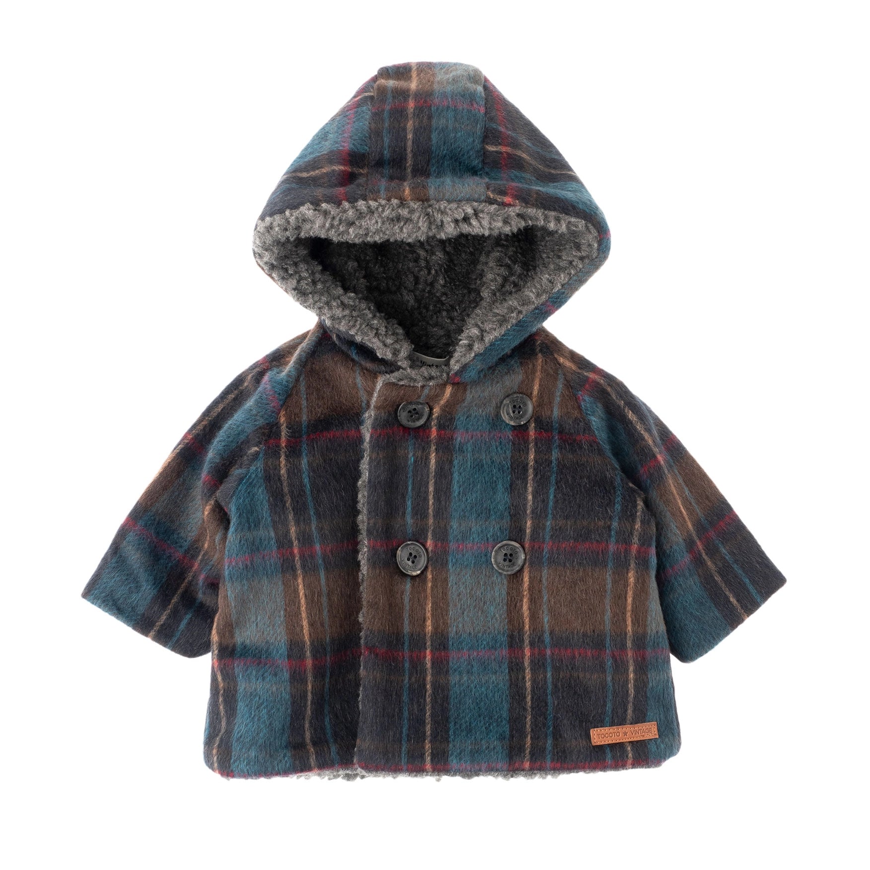 Check Hooded Coat with Furry Lining | TOCOTO VINTAGE