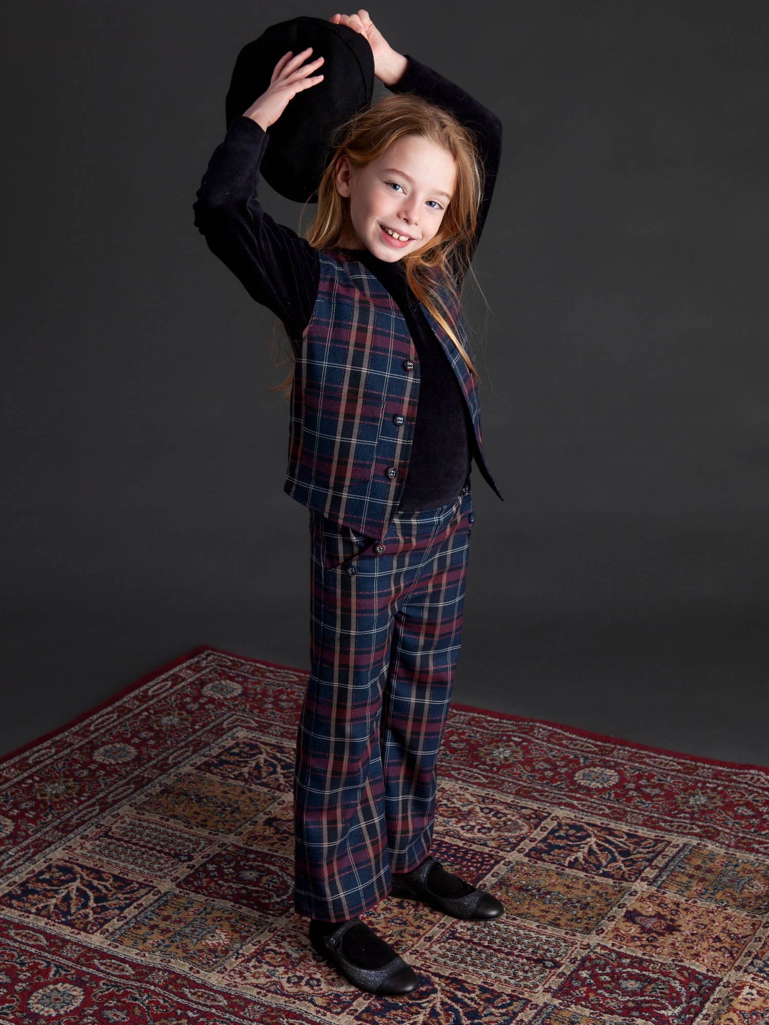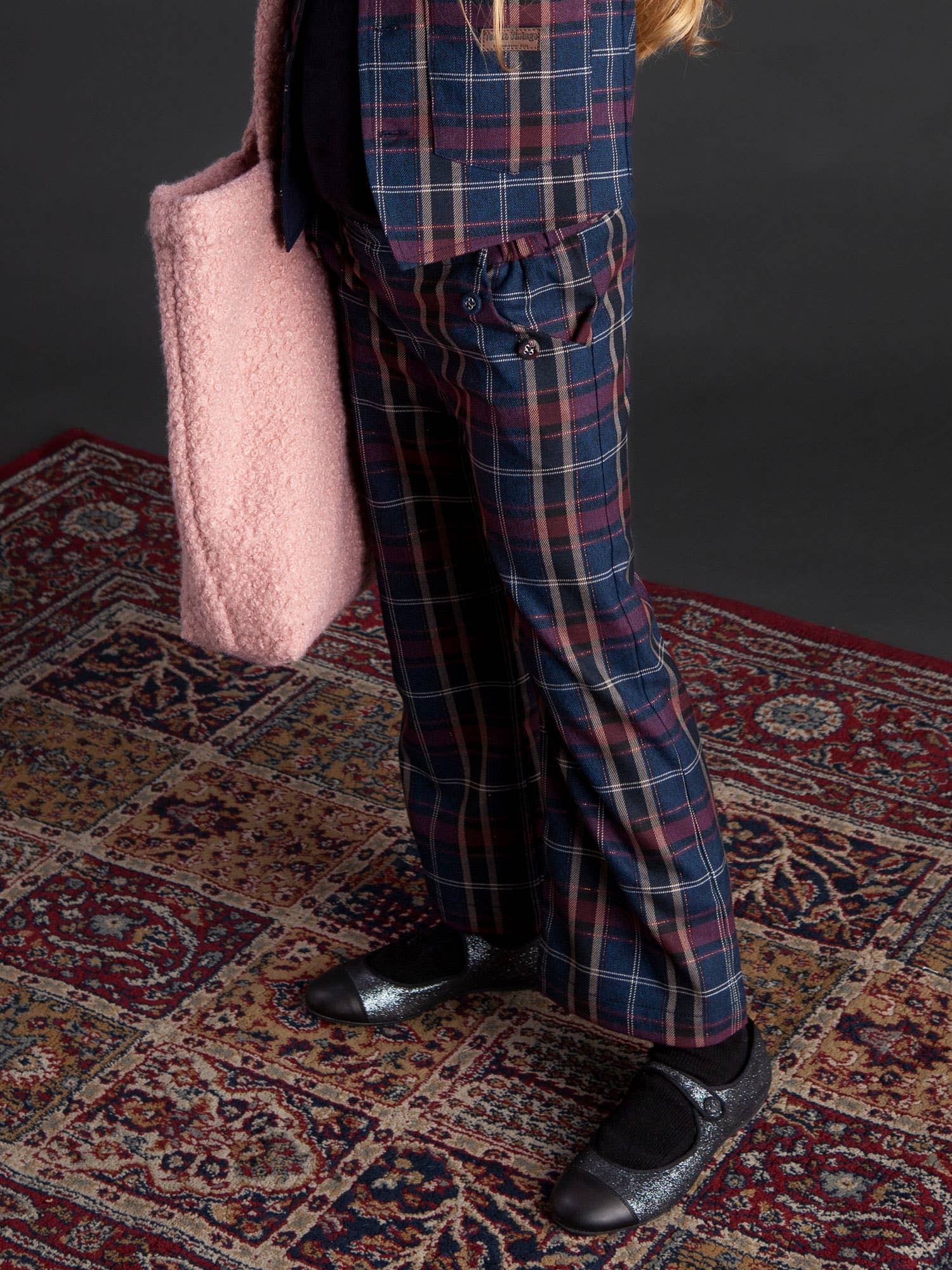 These vibrant red and blue plaid checkered flare pants by TOCOTO VINTAGE bring a fun and stylish twist to any little wardrobe. Designed for ages 2 to 8 years, they’re made with a durable yet breathable fit. The pants feature a cinched waistline for easy dressing and comfort, while three buttons line the top of the pockets, adding a unique detail to the classic design. Perfect for pairing with any top, these pants offer both style and practicality for your little one’s everyday adventures. Crafted with care in Spain, TOCOTO VINTAGE ensures quality, sustainability, and timeless charm.