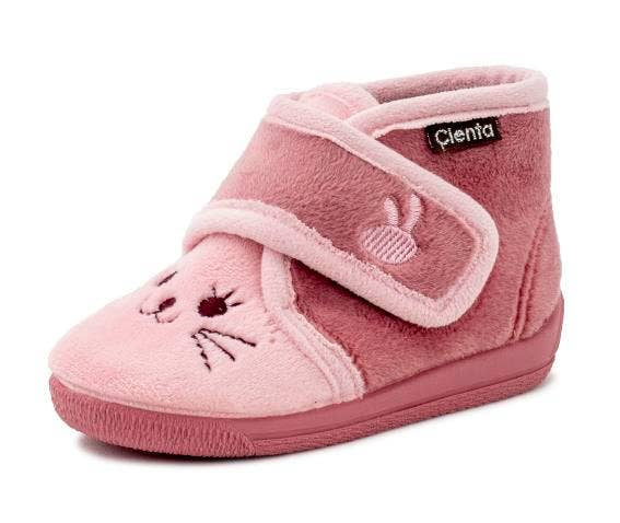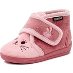 This light and hot pink kitty slipper-style boot is perfect for those colder Autumn/Winter days. Each shoe features light padding, an adjustable hook-and-loop strap, & a non-slip outsole. Fabric Upper. Made in Spain. Available in EUR sizes 20-25.