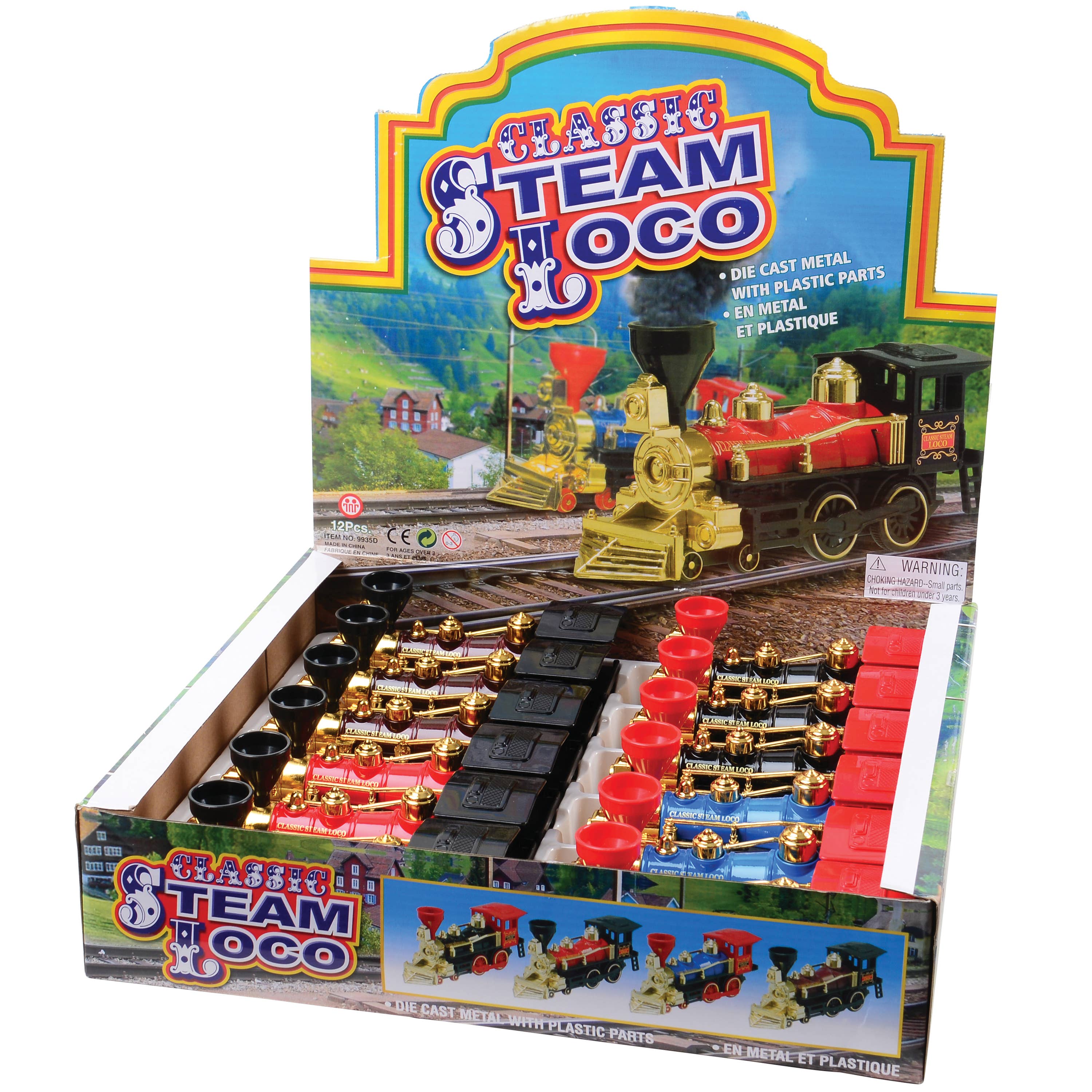 Classic die cast steam engine. Die Cast Trains come in a 12 unit display for merchandising in store.
