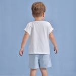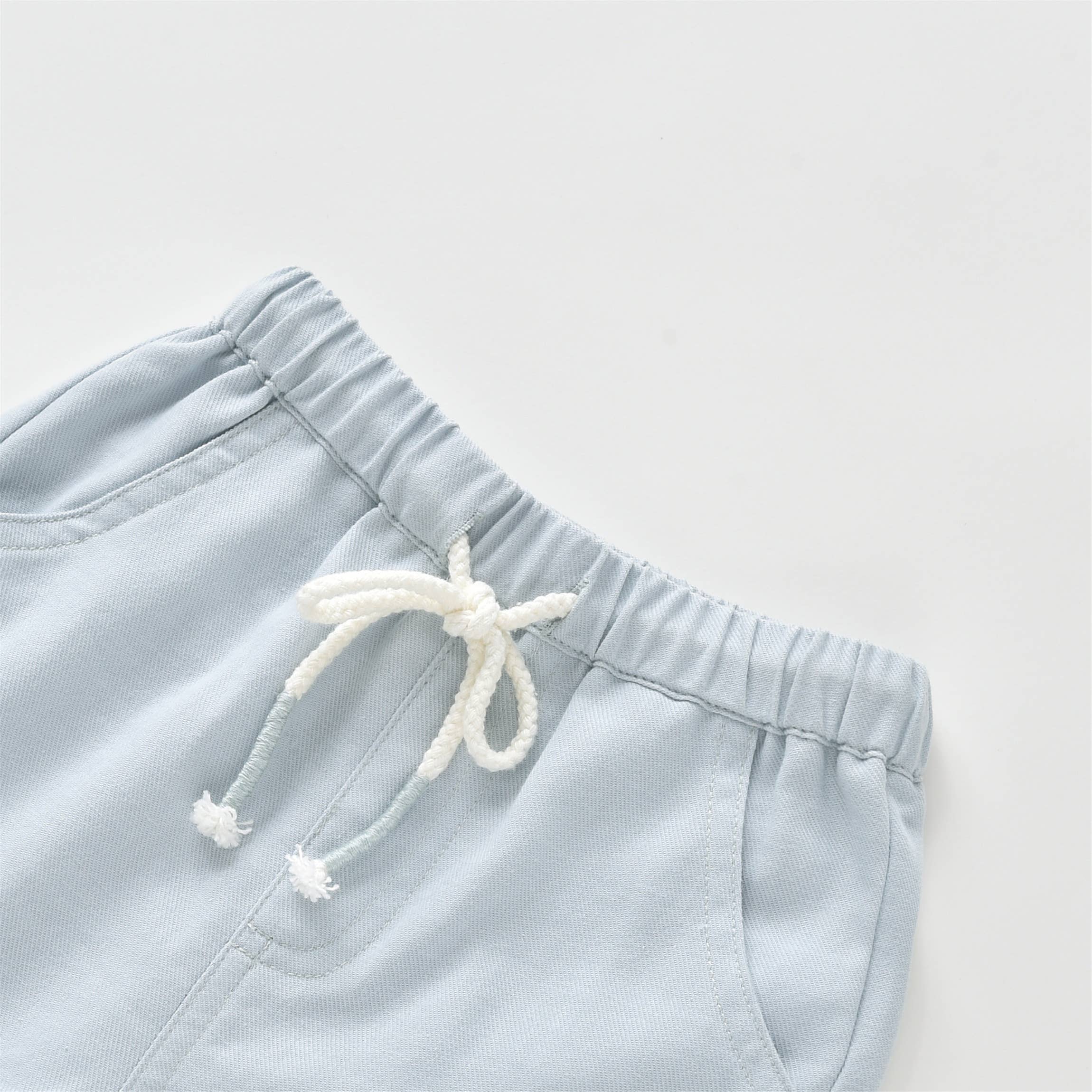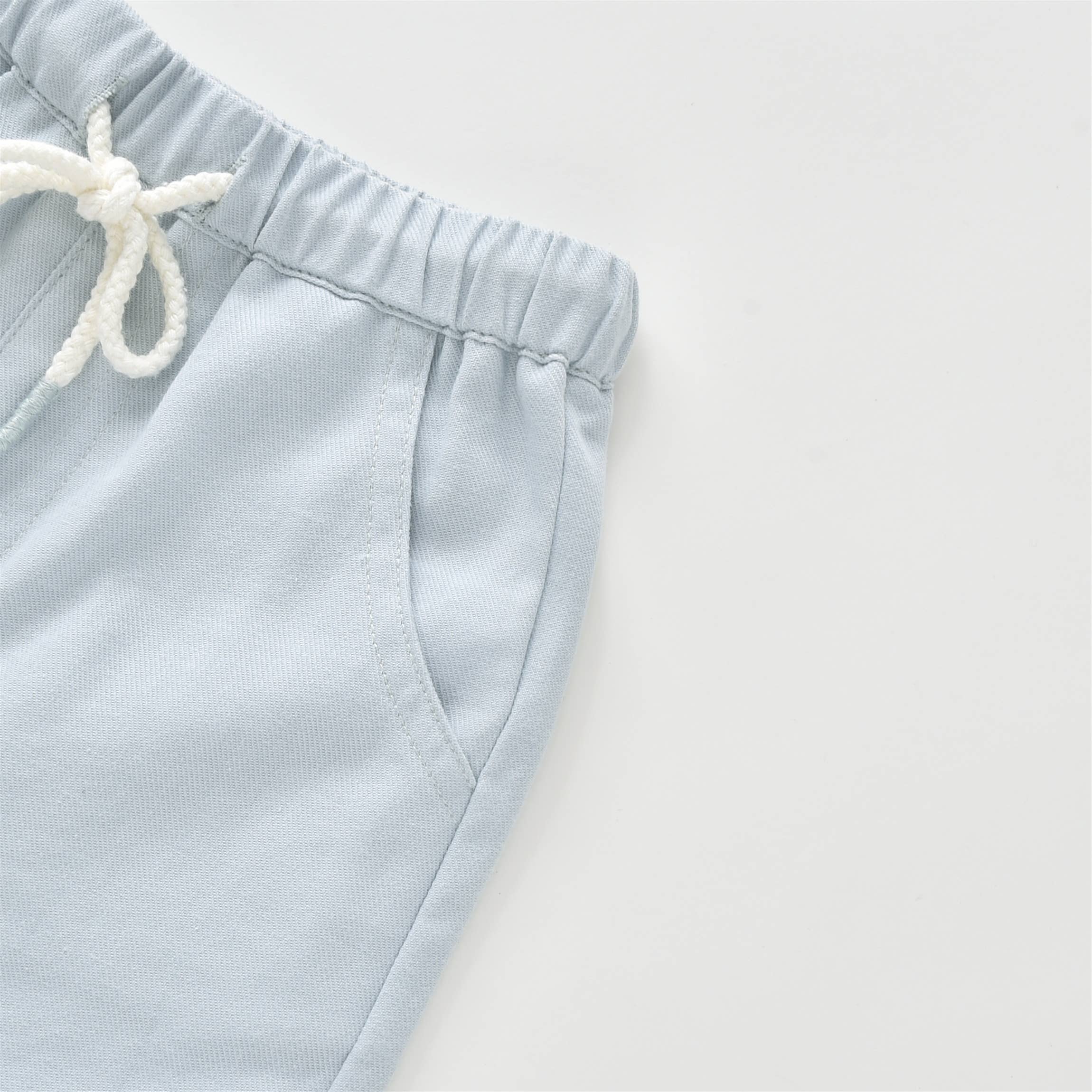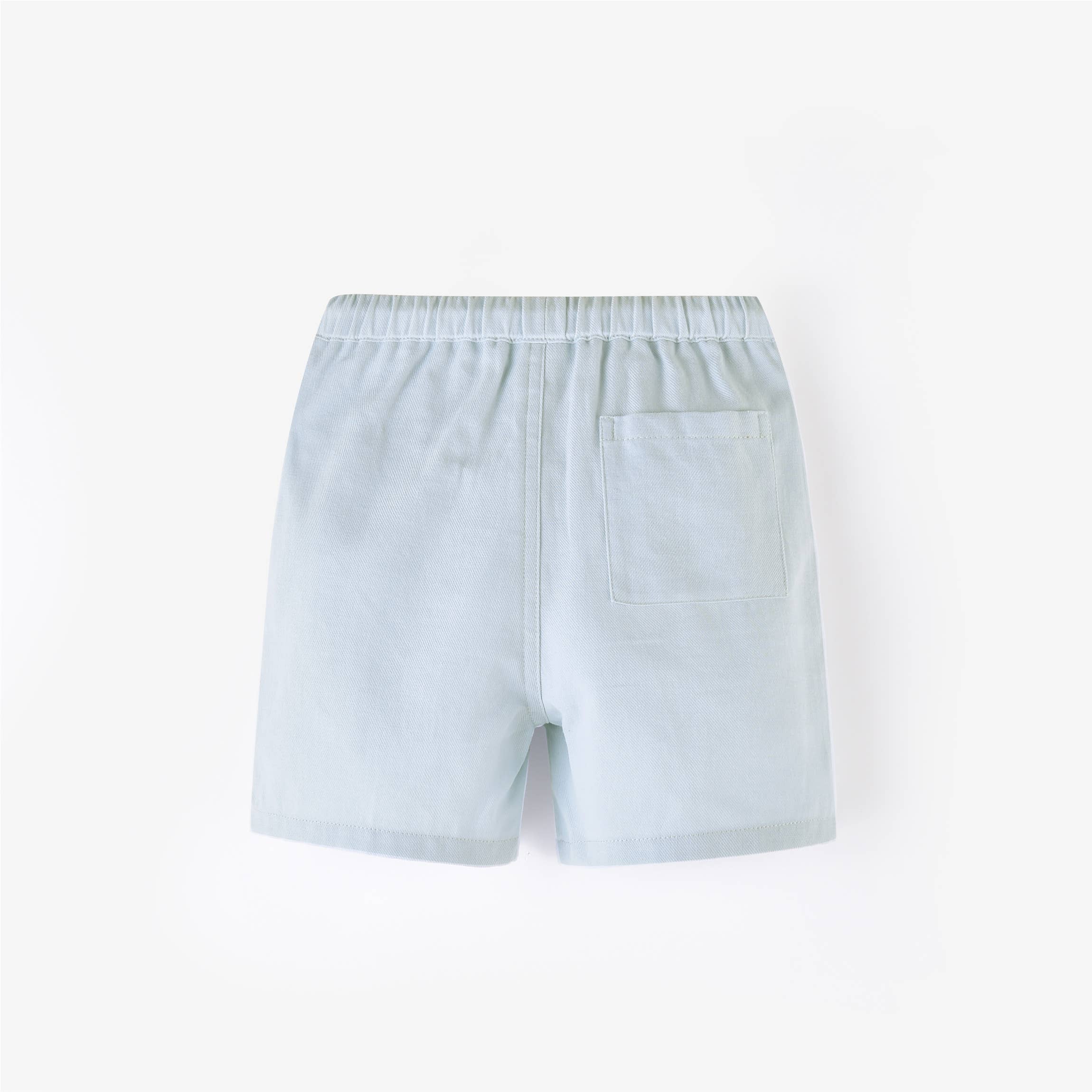 The Aimama Elastic Drawstring Denim Shorts are a must-have for little ones aged 12 months to 5 years. Made from soft, breathable denim in a light blue wash, these shorts are perfect for warm-weather adventures. Featuring a comfortable elastic waistband with a white drawstring for an adjustable fit, they offer both style and practicality. Two front pockets and one back pocket provide space for tiny treasures, making them as functional as they are adorable. A versatile summer staple, these shorts pair effortlessly with any top for a cool and casual look!