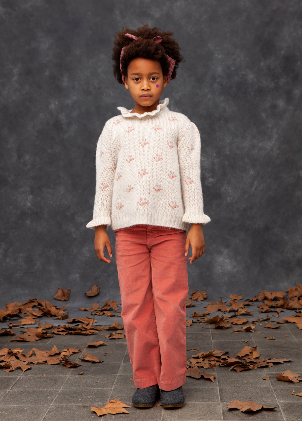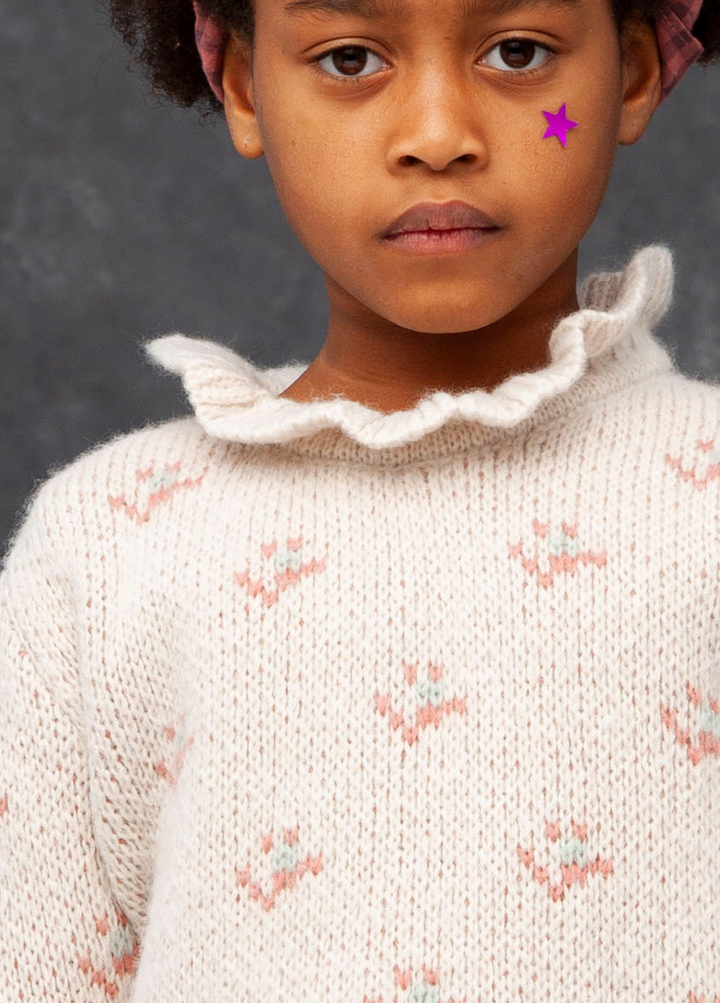 Add a touch of floral elegance to your little one’s wardrobe with this Flowers Jacquard Sweater. Made from soft, cozy fabric, this sweater features a beautifully woven jacquard floral pattern that brings a playful yet sophisticated vibe to any outfit. The intricate floral design adds texture and depth, making it stand out as a statement piece, while the classic crew neckline and ribbed cuffs offer a snug, comfortable fit. Perfect for layering during cooler days, this sweater pairs easily with jeans, skirts, or leggings, making it a versatile addition to both casual and dressy looks.