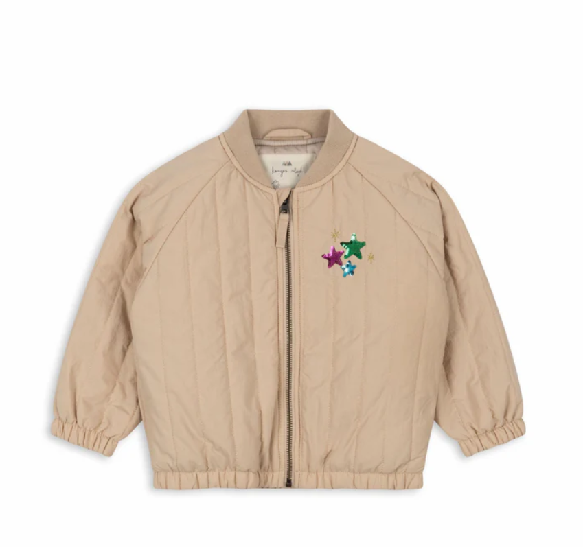 Water-repellent and wind-resistant thermo jacket with decorative sequin pattern on the back. Made from: Shell: 100% nylon, Lining: 100% cotton and 100% polyester, Padding: 100% polyester. Technical details: Wind-resistant, Water-repellent, BIONIC-FINISH*ECO.