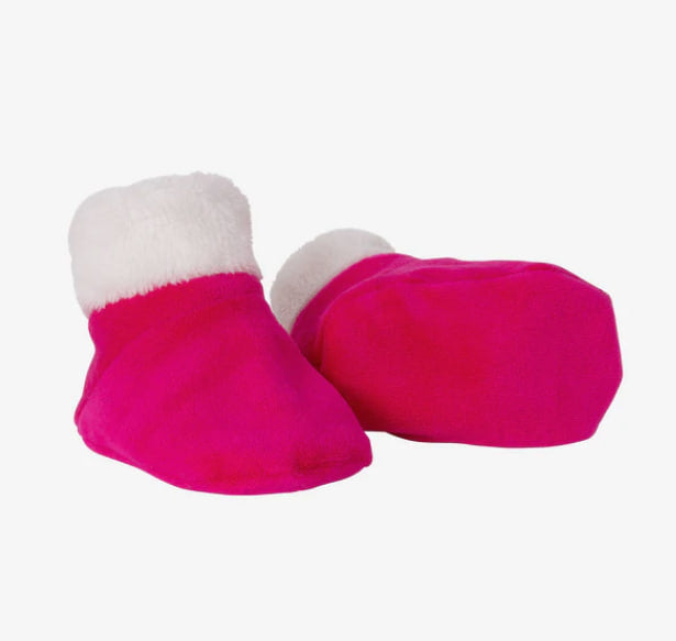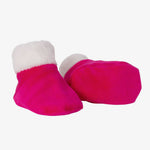 These newborn girls' hot pink booties are the perfect way to keep your little one’s feet warm and stylish. Made from soft, cozy materials, these booties provide comfort and warmth for delicate newborn feet. The vibrant hot pink color adds a fun and cheerful touch, making them an adorable accessory for any outfit. With a stretchy, elastic opening, they’re easy to slip on and stay securely in place, ensuring that your baby’s feet stay snug all day long. Whether for everyday wear or as a thoughtful gift, these booties are a cute and practical addition to any newborn wardrobe. Avalible in sizes 3 and 6.