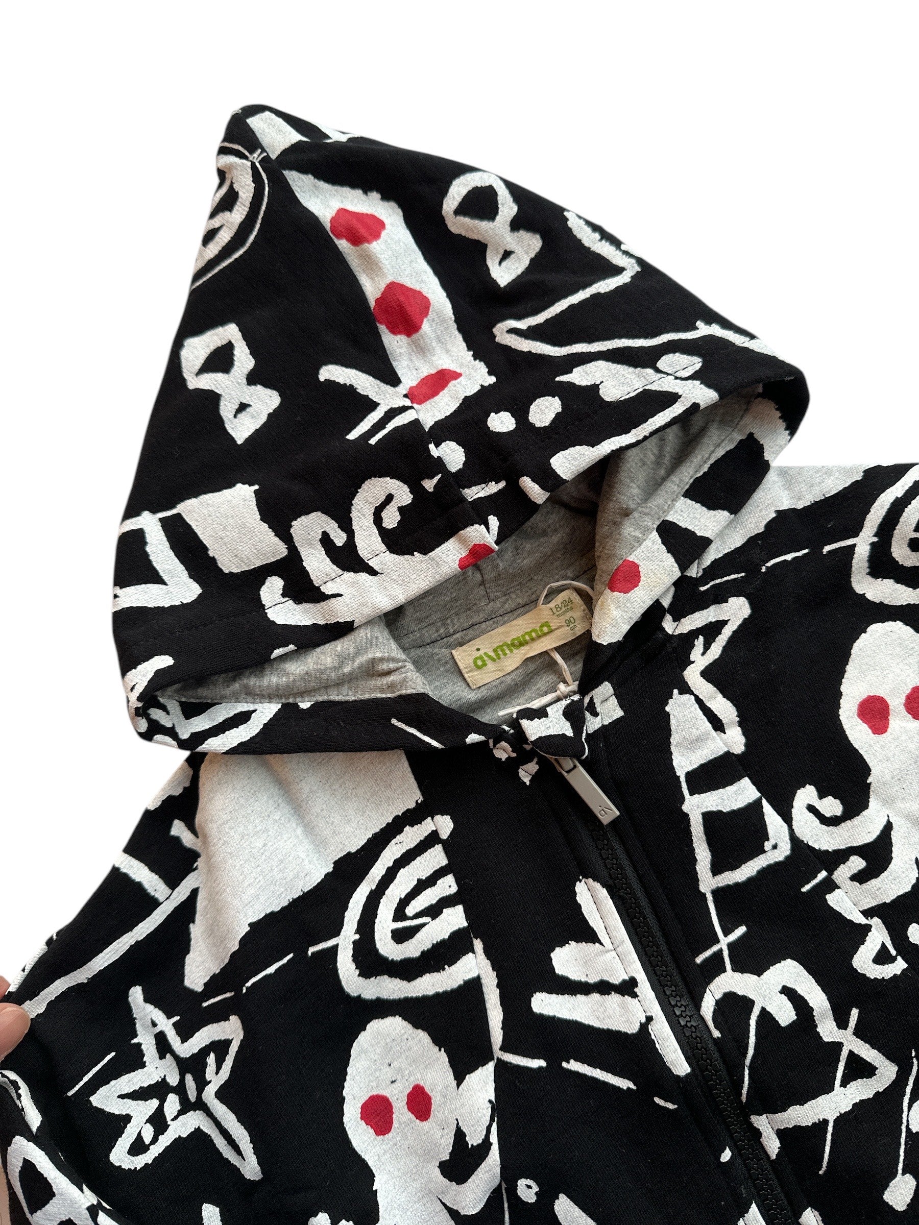 The Aimama Deep Sea Print Hoodie is a stylish and cozy essential for boys 12 months to 6 years. Made from 100% cotton, this black hoodie features a bold white abstract octopus and deep-sea print, adding a unique, artistic touch. Designed for comfort and movement, it has a relaxed fit, loose cuffs and hem, and a big hood for extra warmth—perfect for everyday adventures.
