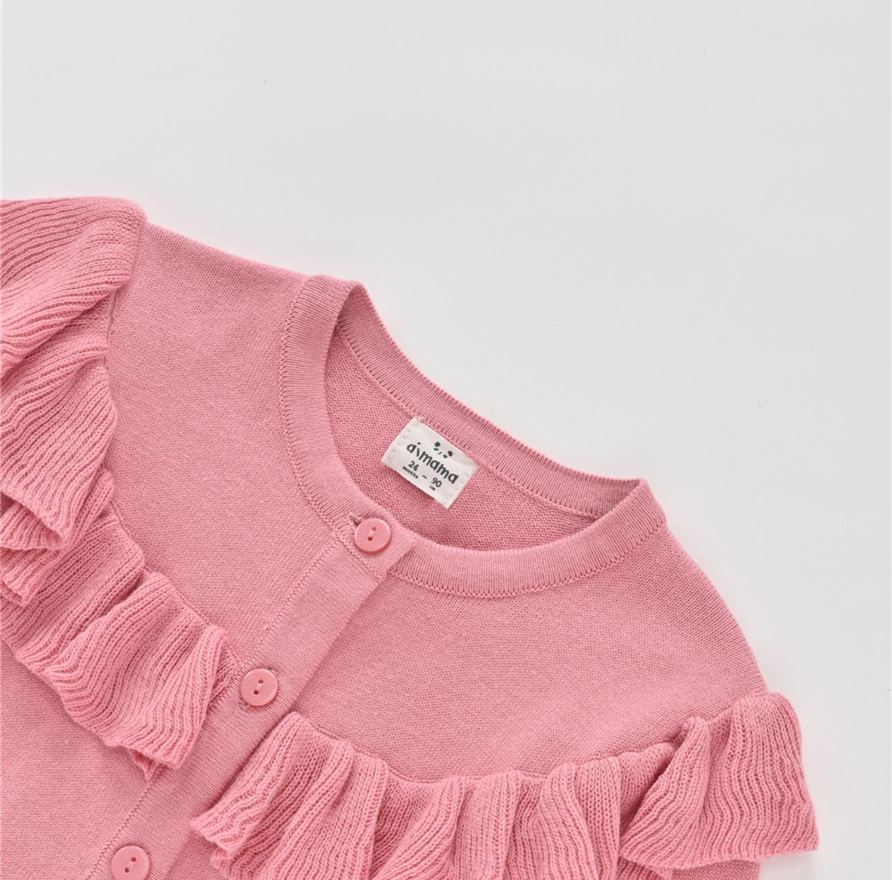 The Aimama Soft Knit Pink Cardigan is a delicate and cozy layer for kids aged 12 months to 9 years. Crafted from fine-knit 100% cotton, this cardigan offers a soft, breathable feel perfect for year-round wear. Designed with a rounded yoke and a decorative rib-knit flounce, it adds a charming, elegant touch to any outfit. The button-down front allows for easy layering, while ribbed detailing at the neckline, cuffs, and hem ensures a snug and comfortable fit. A timeless essential for both casual and dressy occasions.