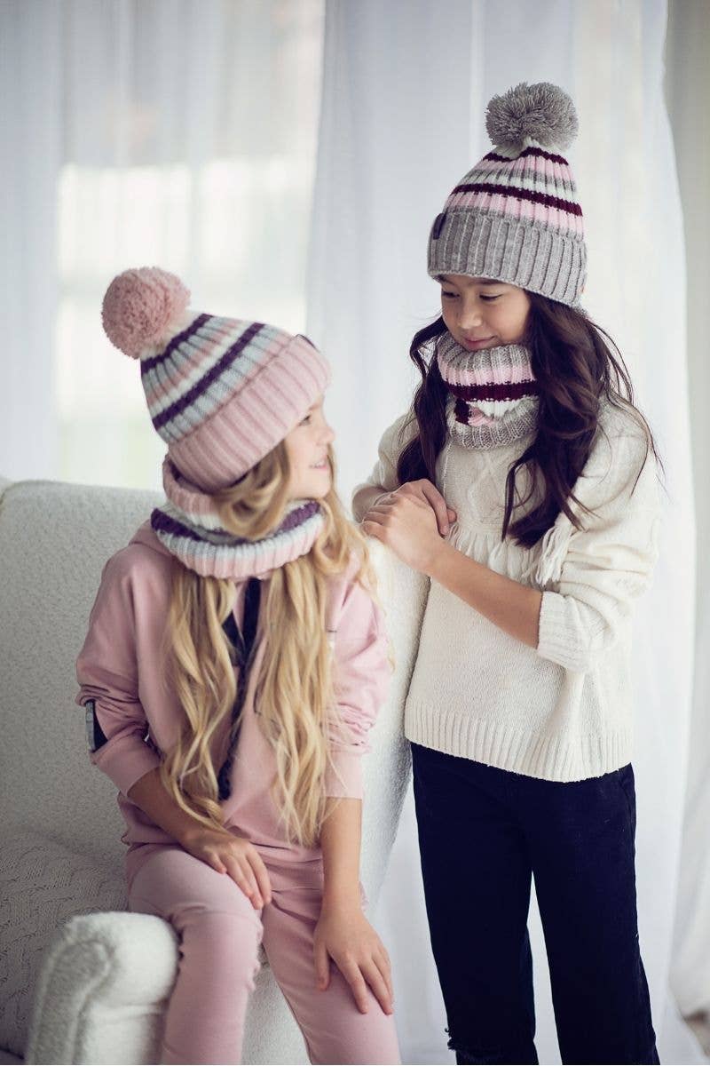 Introducing the Anatalone hat with pompom and snood set, the perfect winter companions. Size is perfect for 7 to 11 year old kids. Crafted from a cozy blend of 80% acrylic and 20% PA and second layer of fleece, this set is designed to keep you warm even on the chilliest days! The elegant grey or pink options of color adds a touch of sophistication to your winter look. The snood is included in the set, offering added protection against the winter chill. You can wear it alongside the hat for a coordinated and chic appearance, or separately to create versatile winter styles. Whether you're a child or an adult, the Anatalone set is a fantastic addition to your winter wardrobe. It guarantees both comfort and style throughout the winter season.