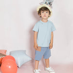 These comfy and cute dusty blue shorts are perfect for your little one! Crafted from 100% soft cotton, they feature an elastic waistband for a snug and adjustable fit. The contrasting brown pockets add a fun pop of color, while offering plenty of space for their small treasures. Available in sizes 12-18 months and 2-3 years, these shorts are a stylish choice for active boys.