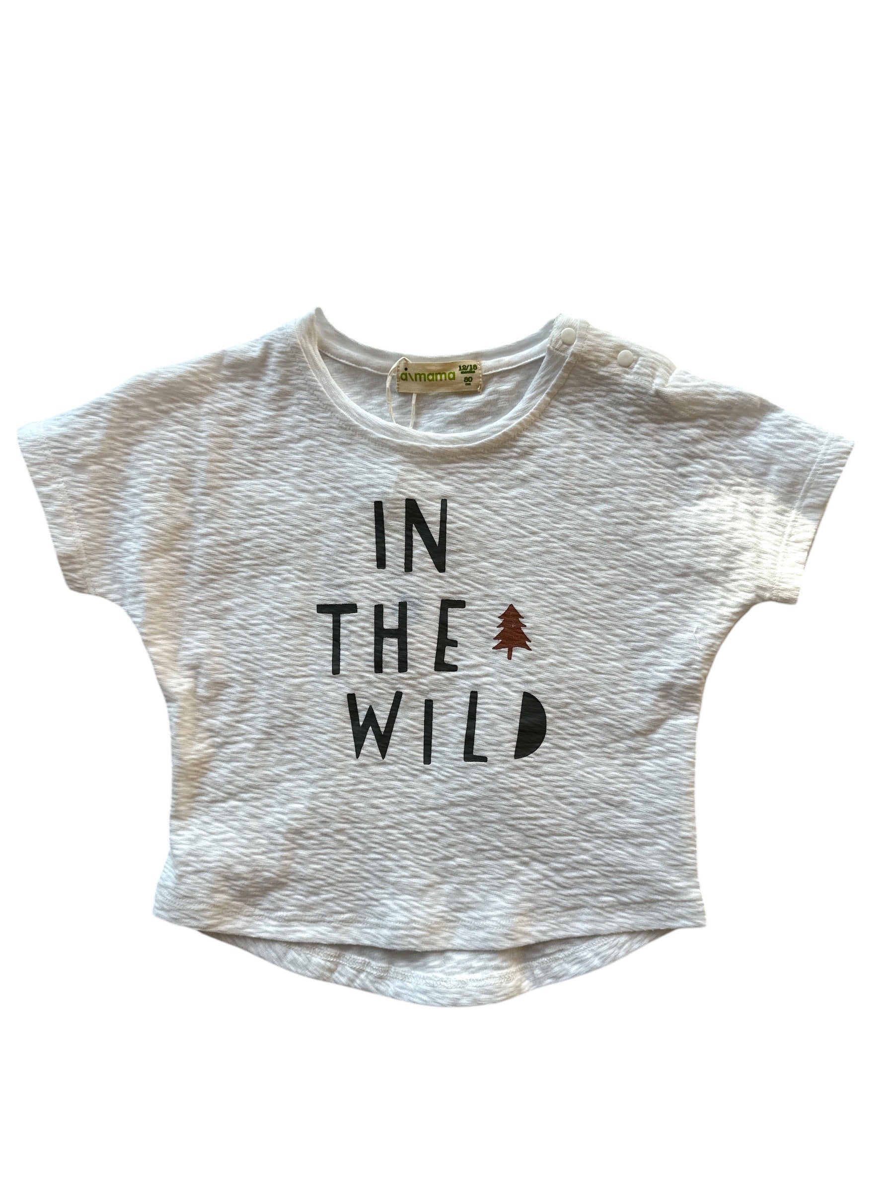 The Aimama "In the Wild" Printed Tee is a playful and comfy choice for little ones aged 12 months to 6 years. Made from 100% cotton with a soft knit texture, this vanilla-colored tee offers both breathability and comfort. The "In the Wild" print on the front adds an adventurous and bold touch, perfect for young explorers. With its relaxed, baggy fit and soft fabric, this tee is perfect for everyday wear, sparking imagination and adventure wherever they go. Unisex.