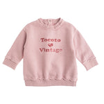The pink Tocoto Vintage Sweatshirt combines classic comfort with a stylish, worn-in look. Made from soft, high-quality fabric, this sweatshirt offers warmth and coziness for your little one. The vintage-inspired design gives it a unique, retro feel, with faded detailing and a relaxed, lived-in look that adds character to any outfit. Featuring a comfortable fit, ribbed cuffs, and a crew neckline, it’s easy to pair with jeans, leggings, or skirts for a laid-back yet fashionable look. Avalible for 12-18M olds.