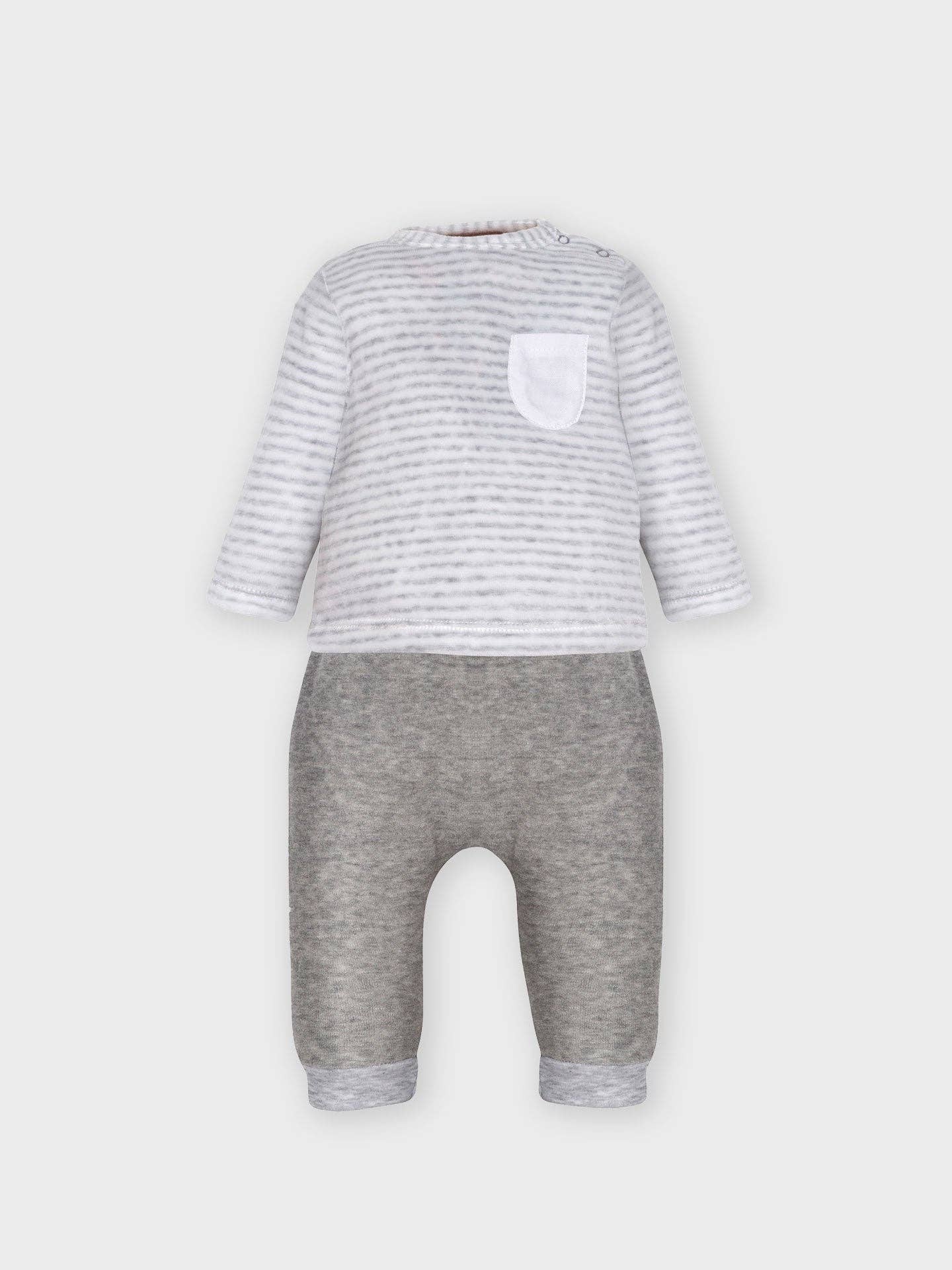 Sweater set with pocket and pants in grey velvet 80% Cotton/ 20% Polyester.