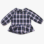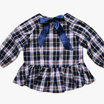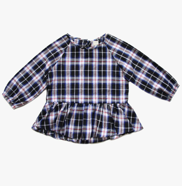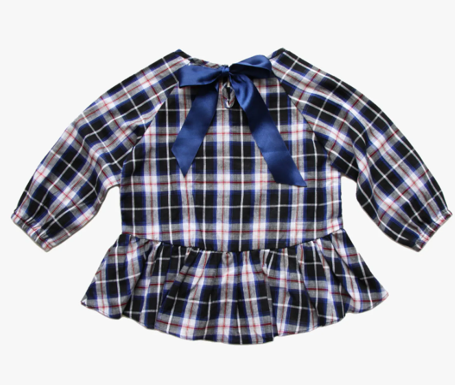 Embrace cozy fall vibes with the Vierra Rose Meeri Peplum Top, designed in a classic blue and white plaid pattern. This charming cotton blouse features ruffled ends and cinched long sleeves, making it both stylish and comfortable for little ones. Perfect for crisp autumn days, it adds a playful yet sophisticated touch to any outfit.
