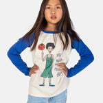 Long-sleeved organic cotton t-shirt for children with Will, the Basketball Player! print This model has raglan sleeves and a ribbed collar.