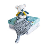 Meet Yoka the Koala, Doudou et Compagnie’s newest addition to Classic Baby Gifts. Yoka the Koala holds his own doudou safety blanket to soothe both him and baby. Gender-neutral design features forest branches on a white background, complemented by yellow and sea green colors. All Doudou et Compagnie’s products are luxuriously designed with the finest, softest fabrics, and pass rigorous safety testing so you can rest assured that baby is safe. Machine wash gentle cycle, and lay flat to dry.